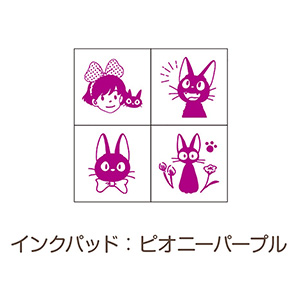 インクパッド付ですぐに使える。持ち運びに便利なかわいいケース入りのミニスタンプセットです。人気の「魔女の宅急便」デザインです。